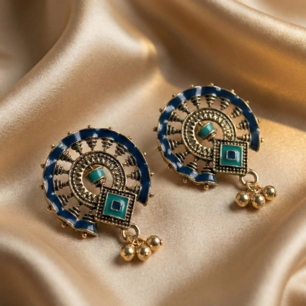 Antique Gold & Blue Drop Earrings