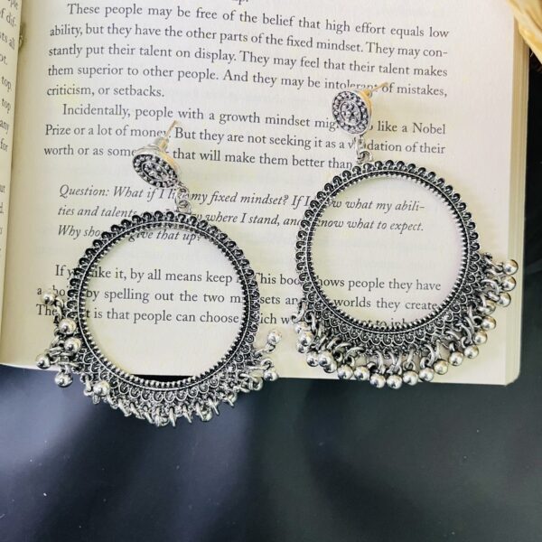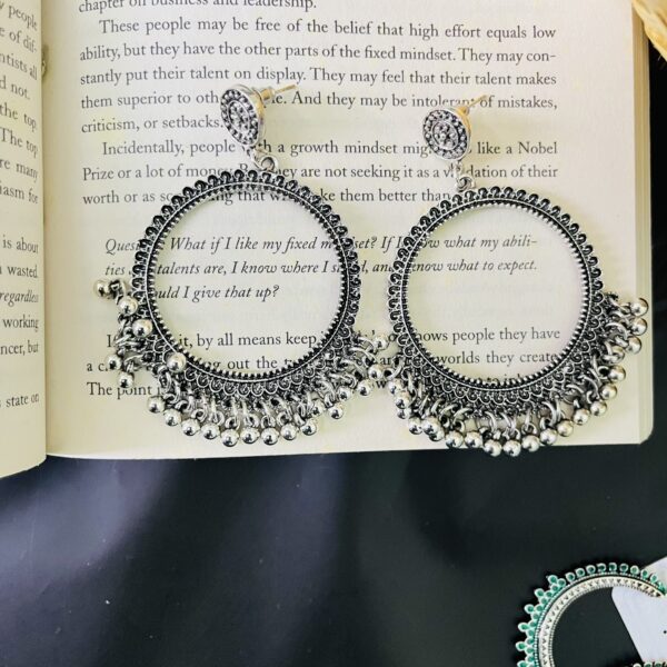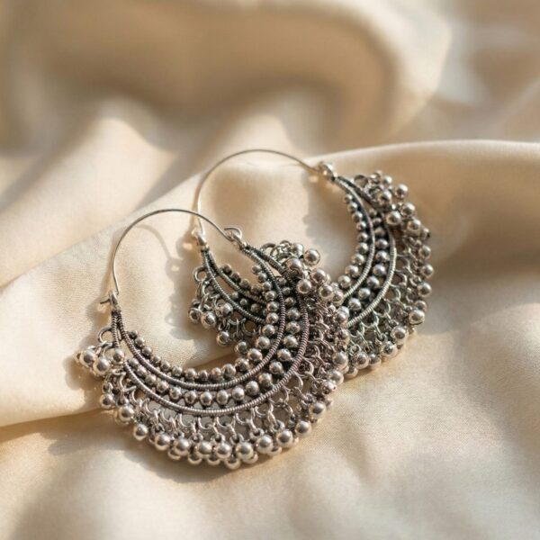 Oxidized Silver Ghungroo Hoop Earrings