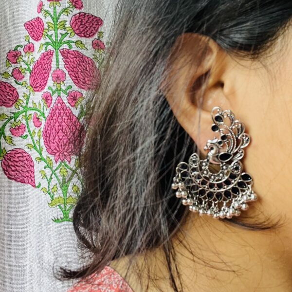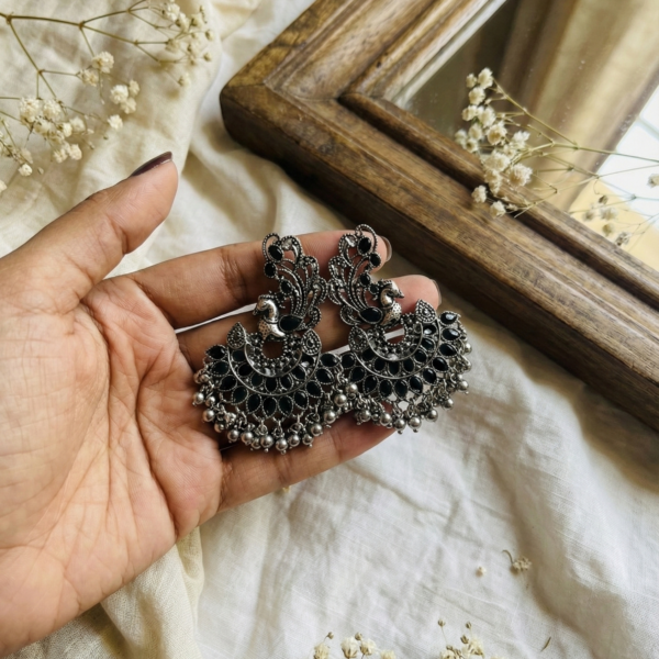 Onyx Style Peacock Chandbali Black