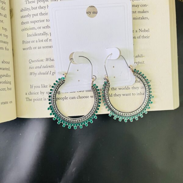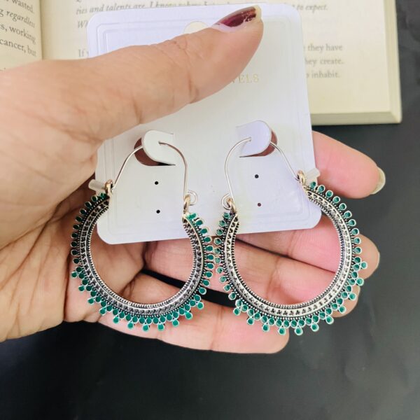 Large Oxidized Silver & Green Loop Earrings