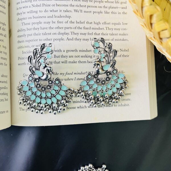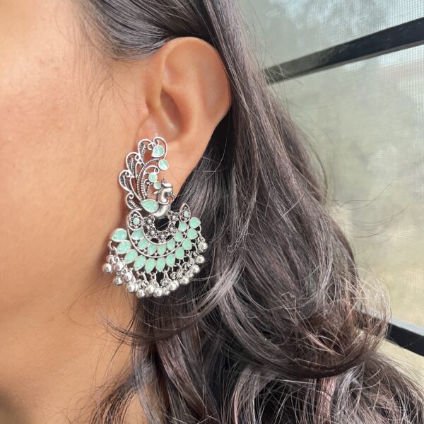 Onyx Style Peacock Chandbali Pastel green