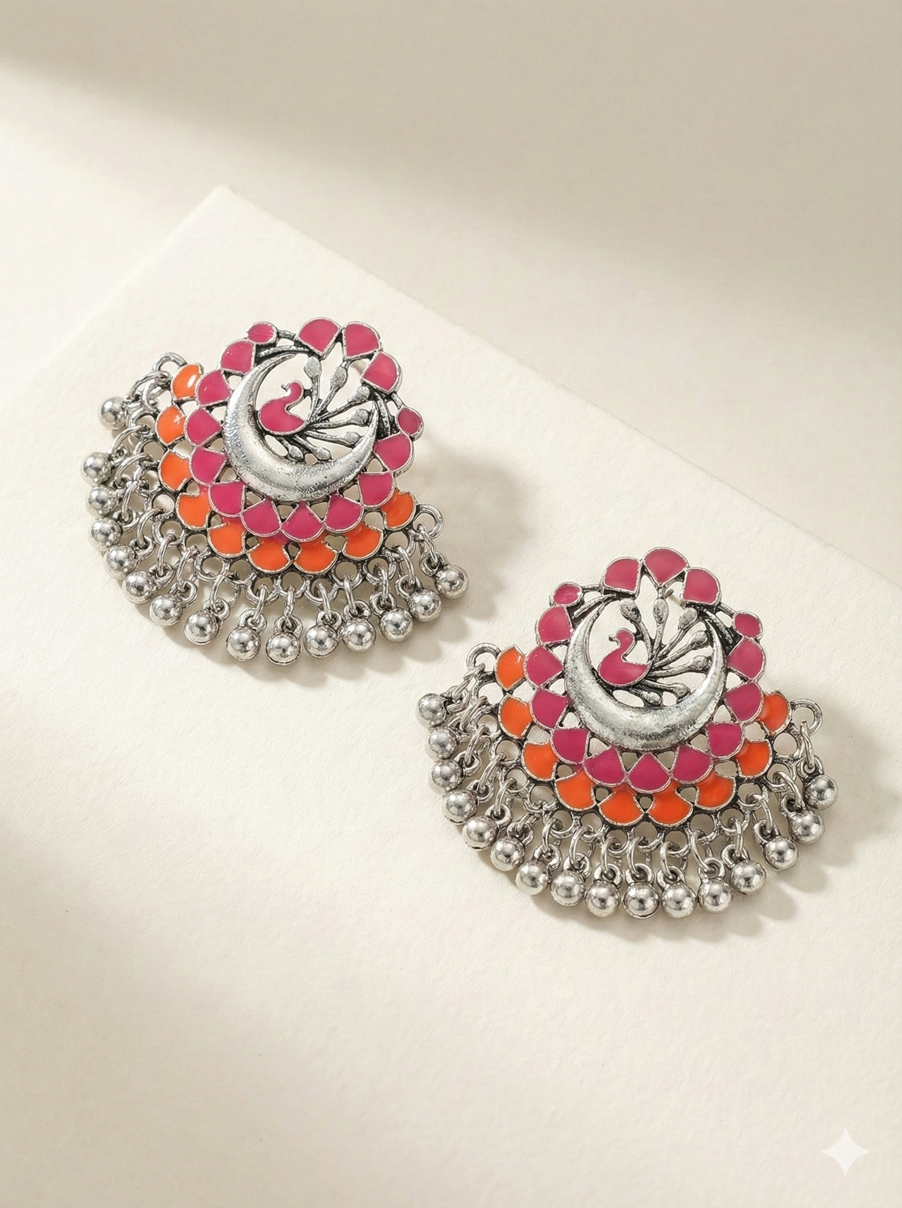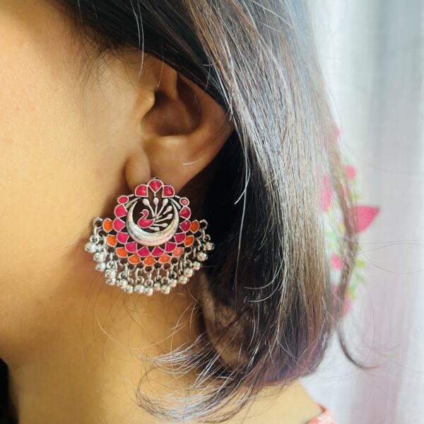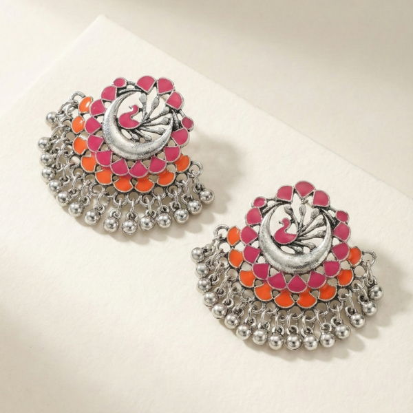 Pink & Orange Enamel Peacock Earrings