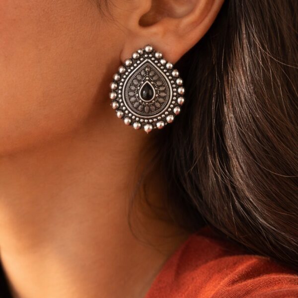 Oxidized Silver Teardrop Studs